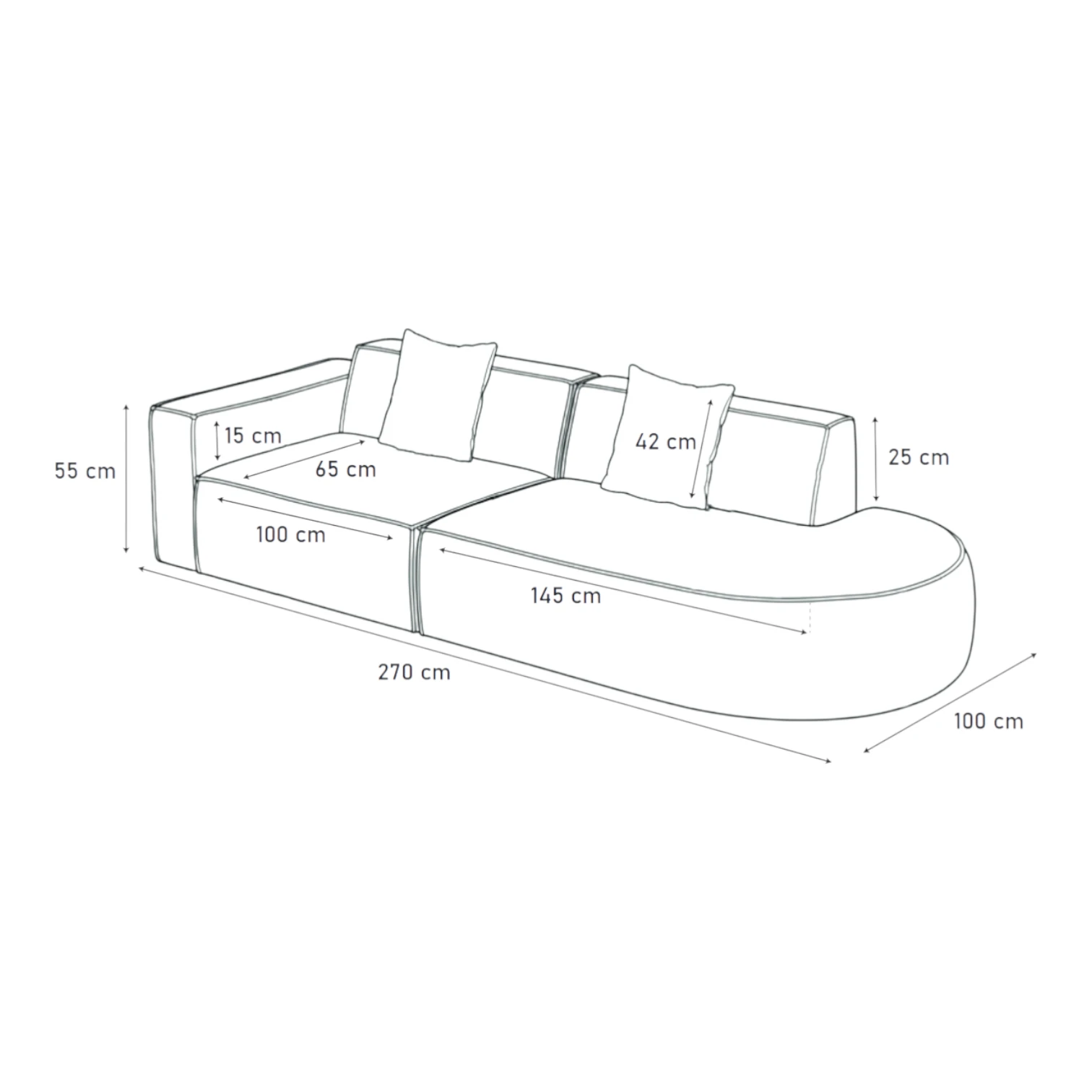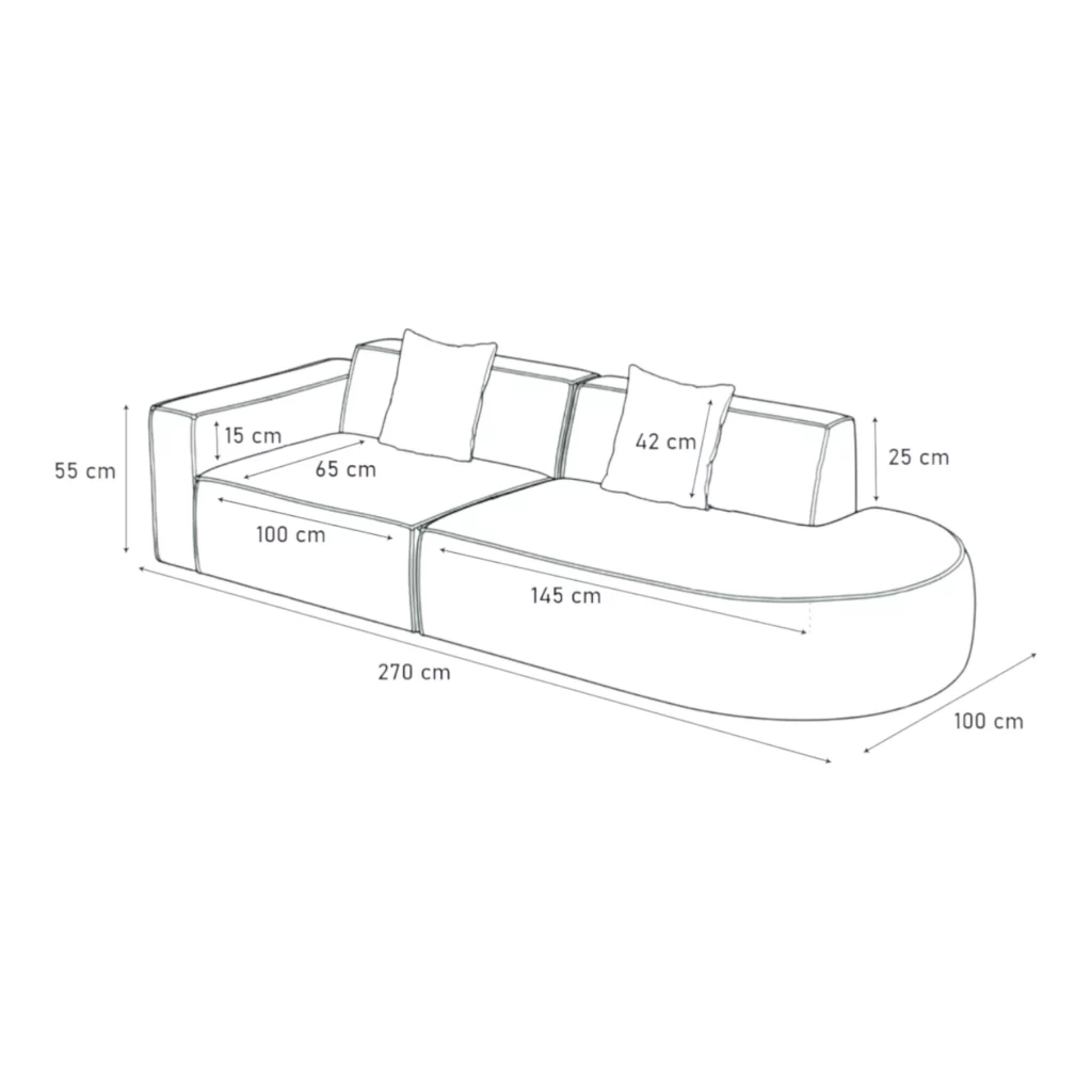 DIMENSIONS — Envergure de 270 cm, idéale pour structurer les espaces de vie spacieux avec élégance et simplicité.